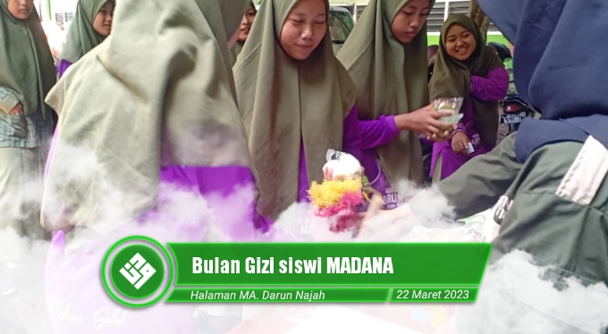 Usai pemberian hadiah, waka kesiswaan yang dibantu oleh osim MA Darun Najah, menggelar bulan gizi untuk seluruh siswi ma darun najah. Yakni dengan memberikan asupan makanan dan minuman yang bergizi serta tablet penambah darah yang bermanfaat bagi kesehatan.